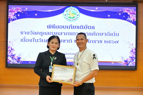 เทศบาลเมืองทับกวางได้ดำเนินการคัดเลือกครูและบุคลากรทางการศึกษา “วันครู” ครูดีเด่น ประจำปี พ.ศ.2569 โดยได้จัดพิธีมอบเกียรติบัตร “ครูดีเด่น” ประจำปี พ.ศ. 2569 ในวันอังคาร ที่ 27 มกราคม 2569 ณ ห้องประชุมชั้น 4 สำนักงานเทศบาลเมืองทับกวาง โดยมีนายปู แตงอ่อน นายกเทศมนตรีเมืองทับกวางให้เกียรติเป็นประธาน และมอบเกียรติบัตรแก่ครูและบุคลากรดีเด่นประจำปีนี้ รางวัลนี้จัดขึ้นเพื่อเป็นขวัญและกำลังใจให้แก่ครูและบุคลากรทางการศึกษา ที่มีผลงานและทำคุณประโยชน์ต่อองค์กรและส่วนรวม มีรายชื่อดังนี้